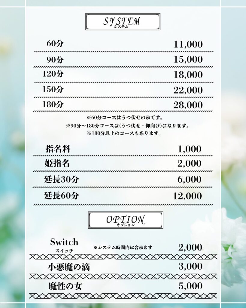 当店はリラクゼーションを目的とした施術を提供するサロンであり、風俗営業店ではありません。性風俗関連のサービスは一切行っておりません。